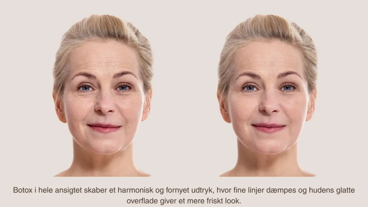 Azzalure er en skånsom behandling, der hjælper med at blødgøre disse udtryk og give ansigtet ro og lethed – uden at tage din mimik fra dig. Det handler ikke om at fryse tiden, men om at fremhæve det friske, vågne og harmoniske i dit ansigt. Jeg arbejder ud fra et æstetisk princip, hvor naturlighed og balance er i fokus. Botox kan anvendes mange steder som blandt andet tæller bekymringsrynker, pandelinjer, kragetæer, kæbespændinger m.m.