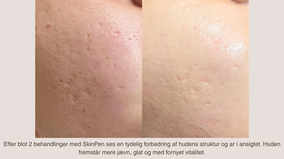 SkinPen er en FDA-godkendt mikroneedling-enhed, der ved hjælp af kontrollerede mikrokanaler stimulerer hudens naturlige reparationsrespons. Ved at aktivere fibroblasterne øges produktionen af kollagen og elastin, hvilket bidrager til en forbedret hudkvalitet over tid.