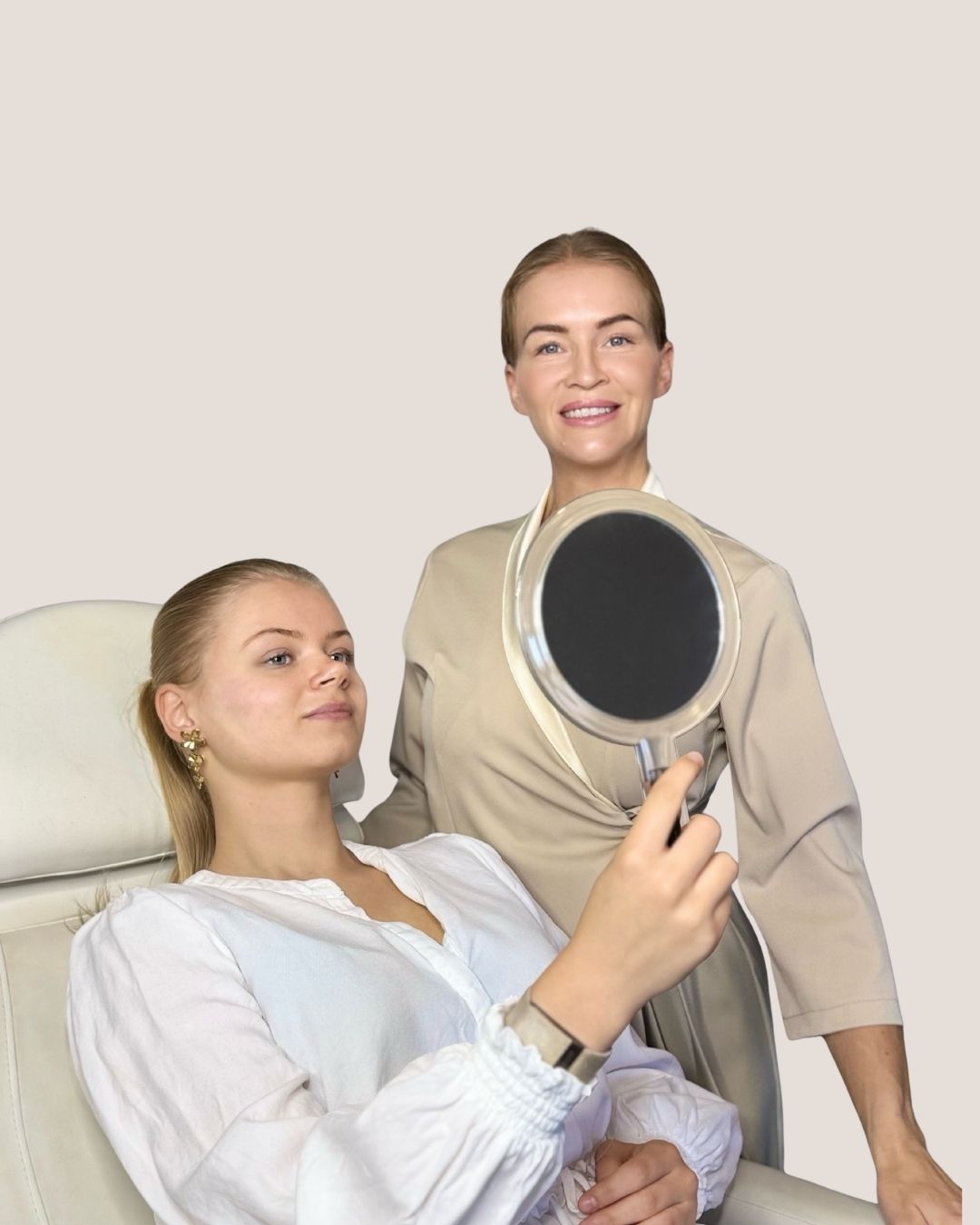 Du kan booke din behandling direkte, eller vælge en tid, hvor vi sammen tilpasser behandlingen til din hud og dine ønsker.